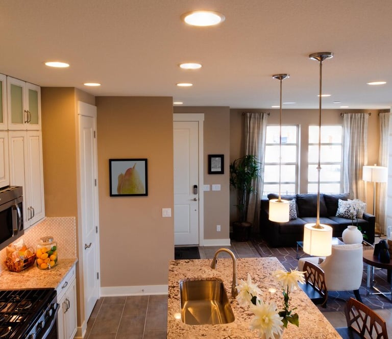 Cabinets, countertops, lighting, tile, electrical, flooring, and appliance coordination.
